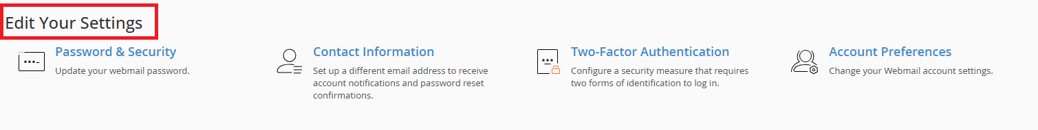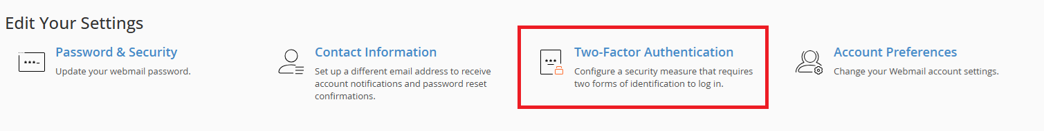 2. Access 2FA Settings: On the “Webmail Home” screen (before opening Roundcube/Horde), find the “Edit Your Settings” section.